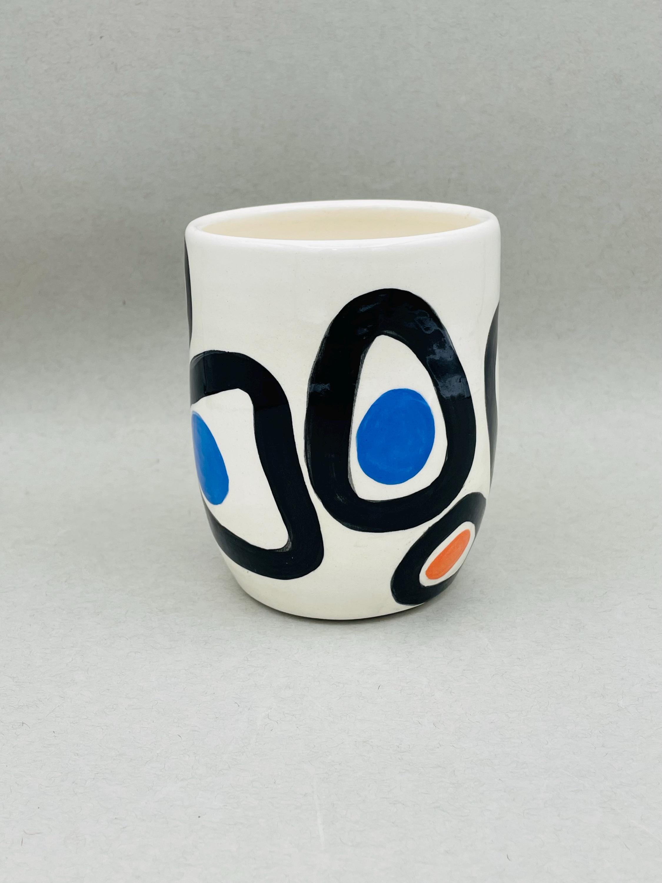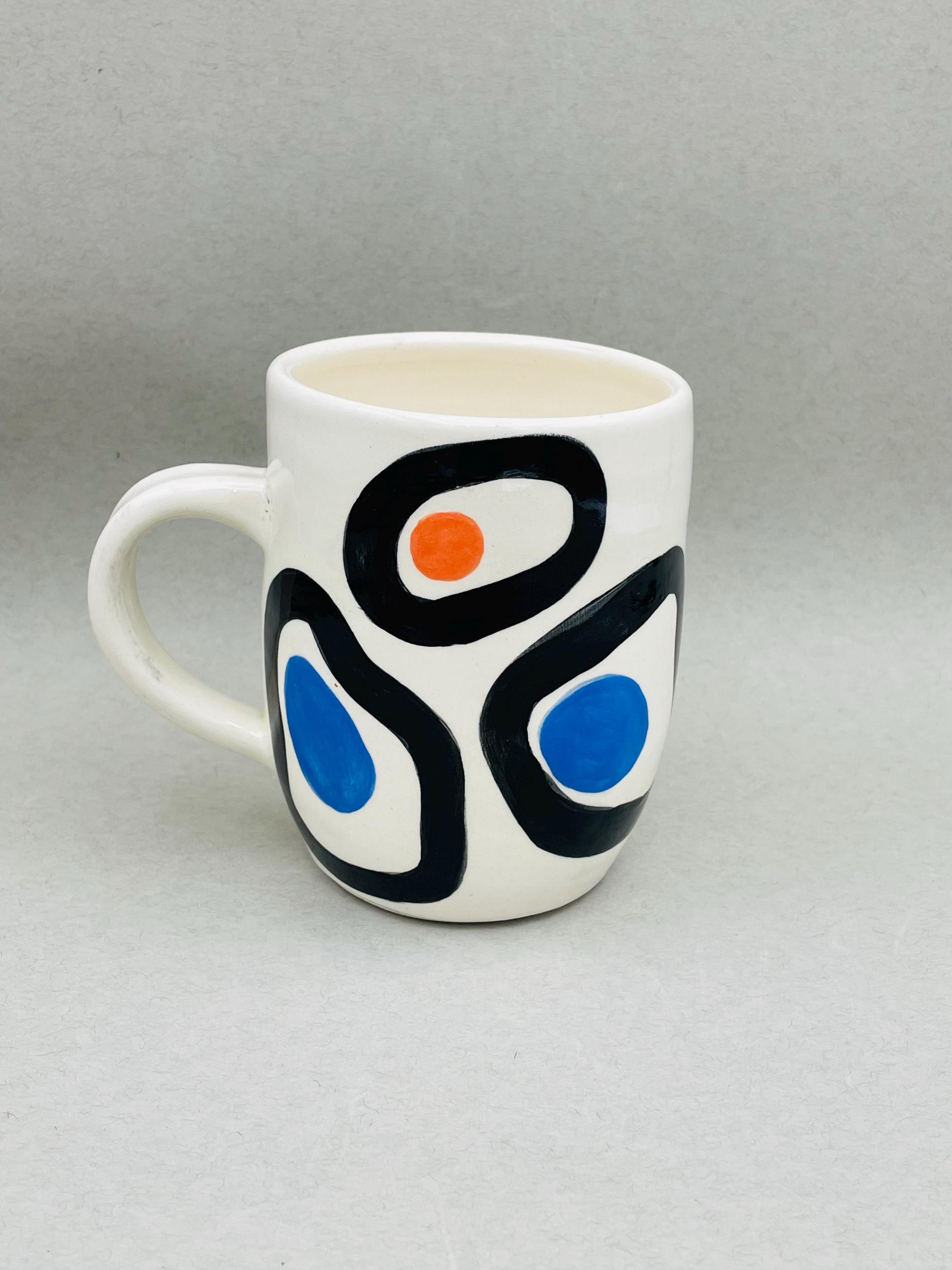 The mug has a visual wiggle that keeps your eye moving. Modern, geometric, almost geologic!- 4 1/4H, 3 1/4 W- Dishwasher, microwave, oven safe